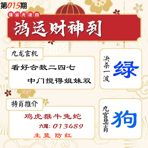 第2026015期: 必中八肖:狗虎兔猪龙鸡猴蛇