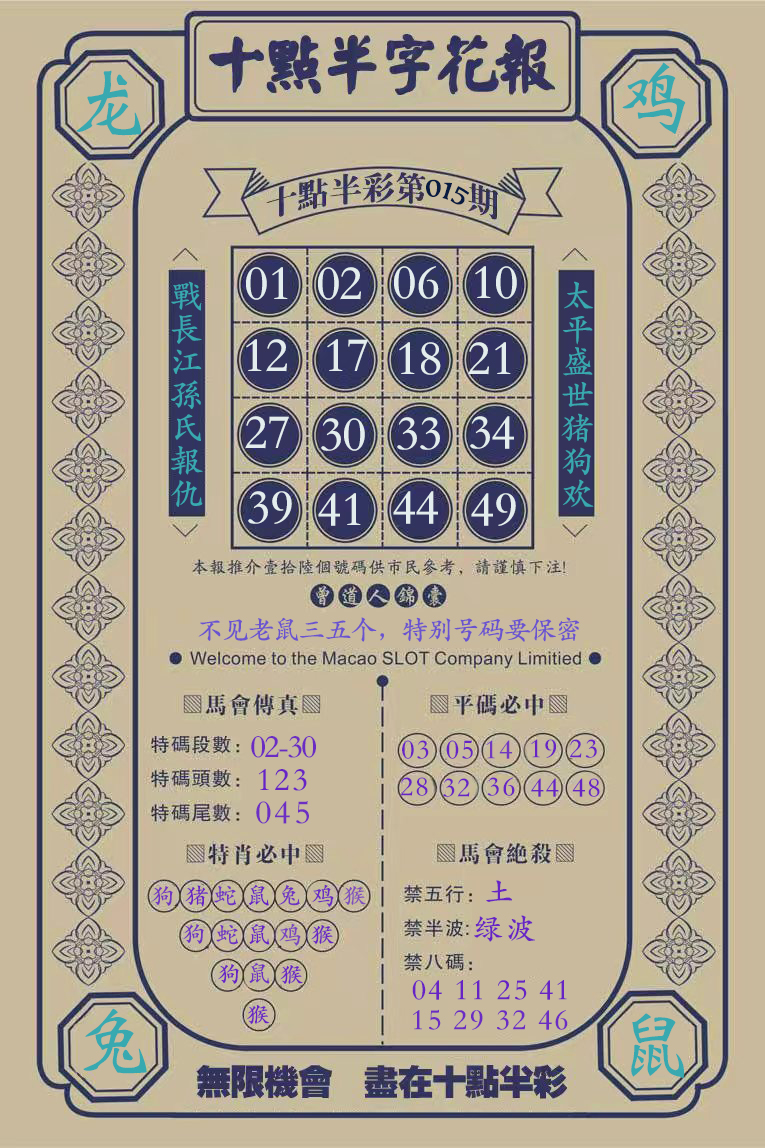 必中四肖:虎兔狗蛇