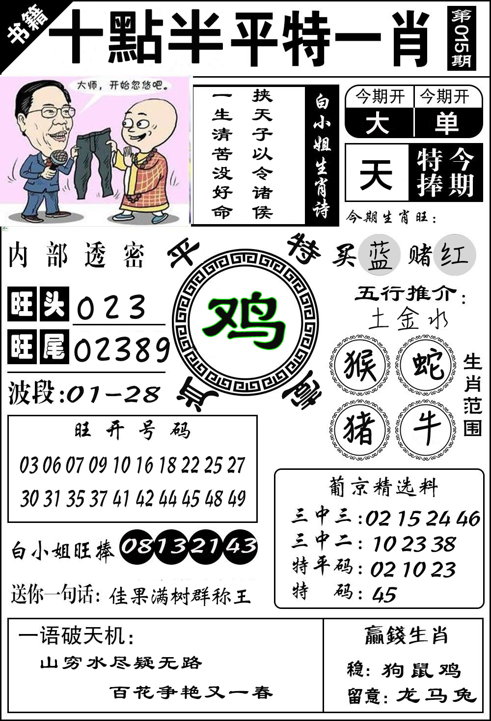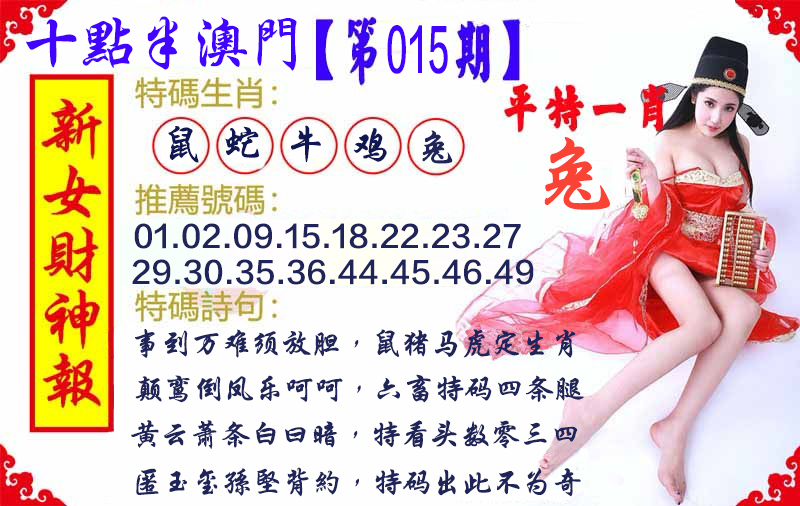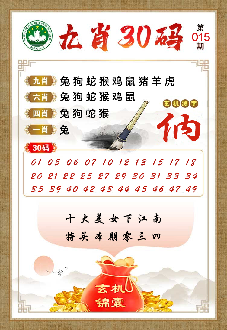 2026015期:今期爆料致富④码: 鸡兔猴 必开三肖03 09 22 27已公开