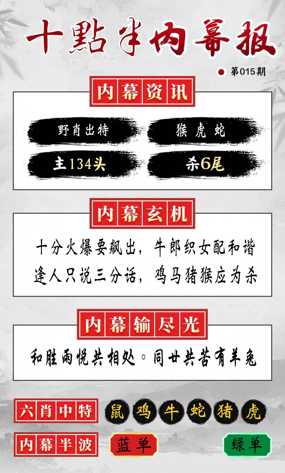 2026015期:张天师公开【神算六肖】: 虎猪猴兔牛鸡 请验证√